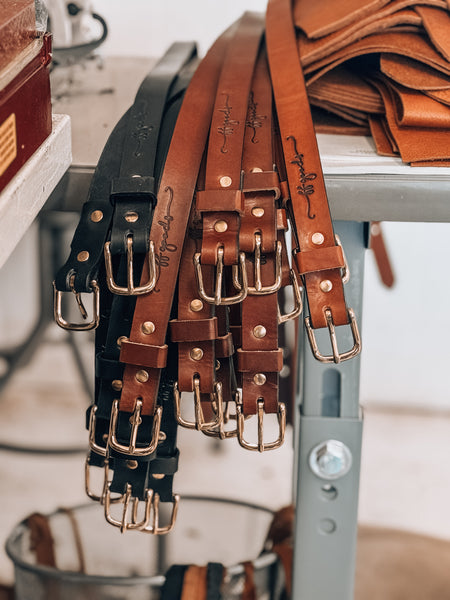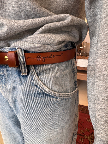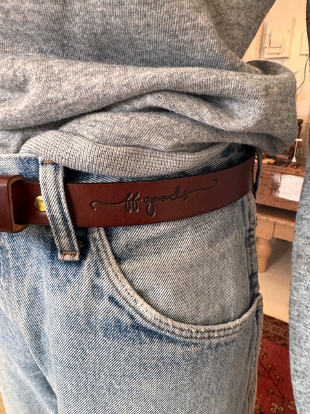Ff goods brings you a new 1” wide belt. Our handmade leather Belts are made from one solid piece of 9/10oz., USA tanned, English Bridle leather. Made with solid brass hardware. The belts are measured and numbered from the end of the buckle to the first and last hole punched.