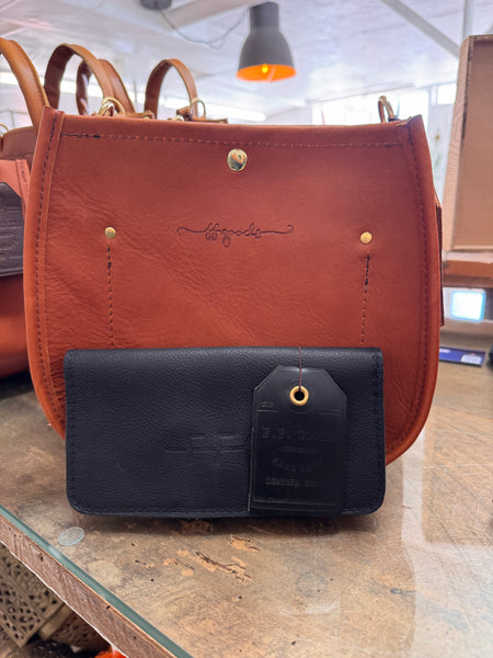 Rustic Black / Small text “FINNS FICKLE GOODS BAG CO” - $95.00 USD